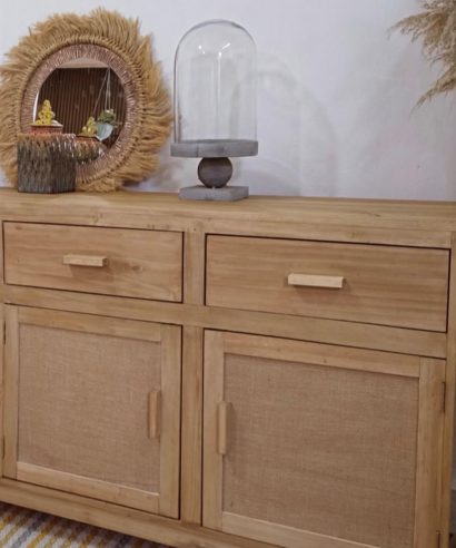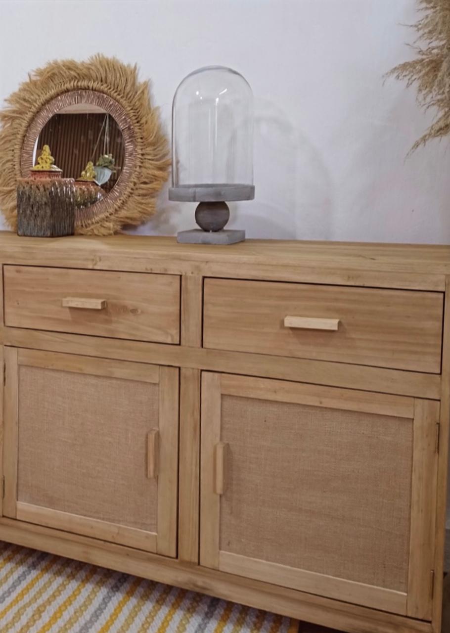 Dos Puertas Enteladas con Fibras Naturales y Dos Cajones de Alamo con Guias Metalicas.